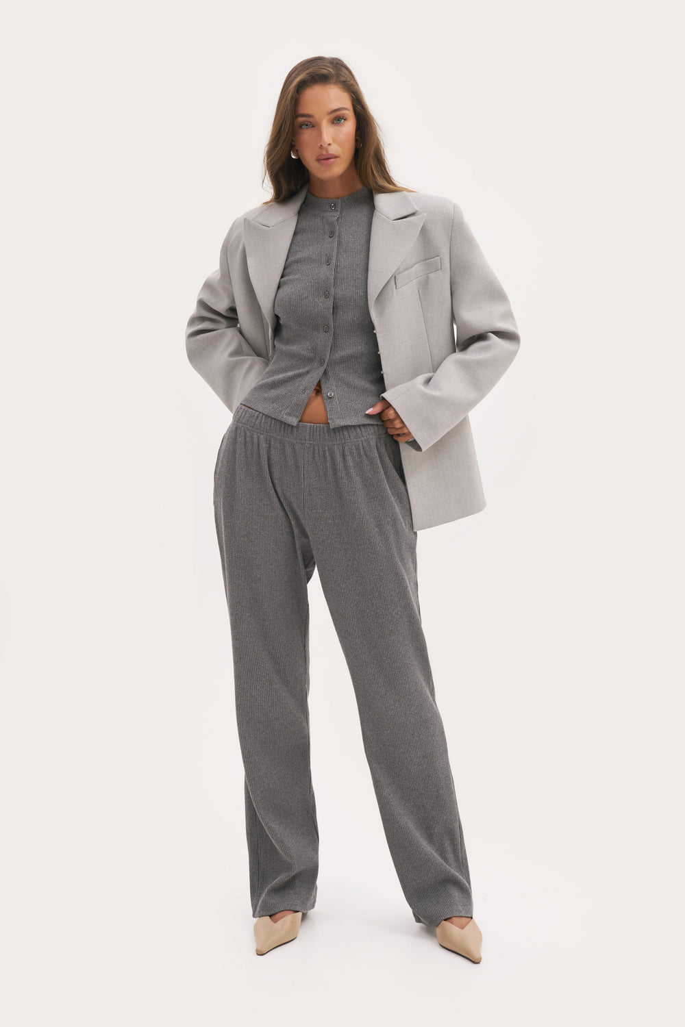 Hourglass Blazer - Light Grey -