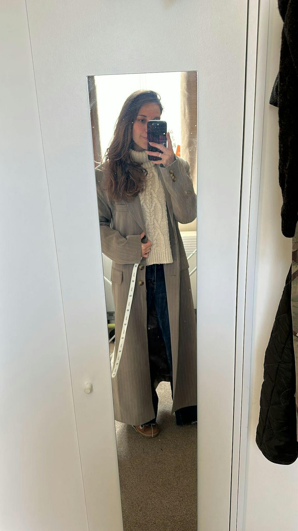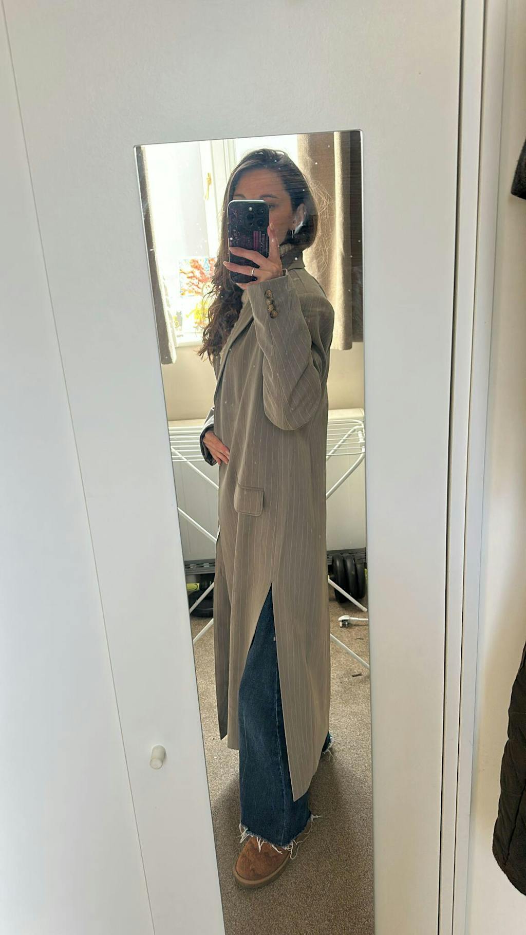 Pinstripe Longline Blazer Coat - Taupe