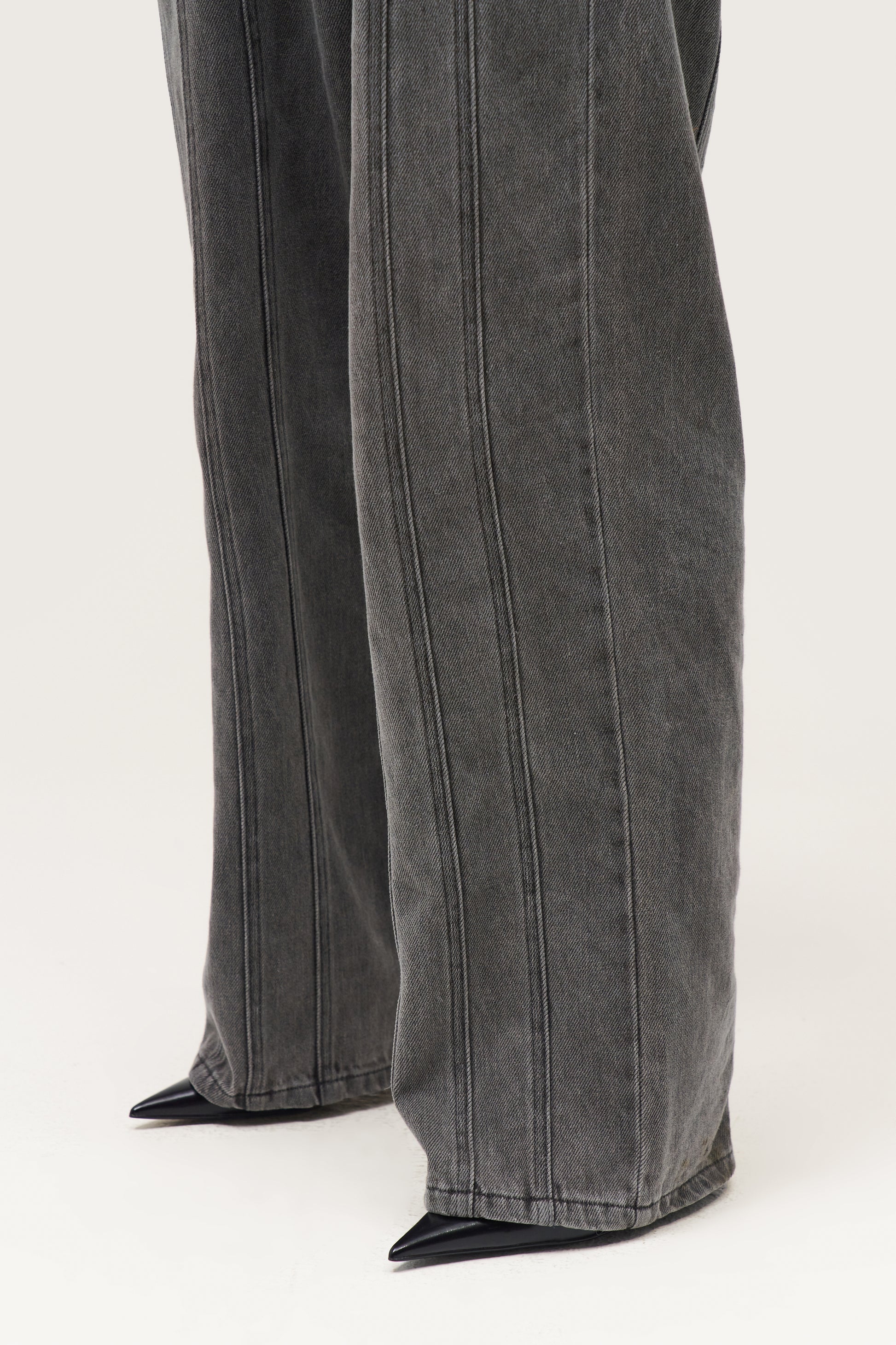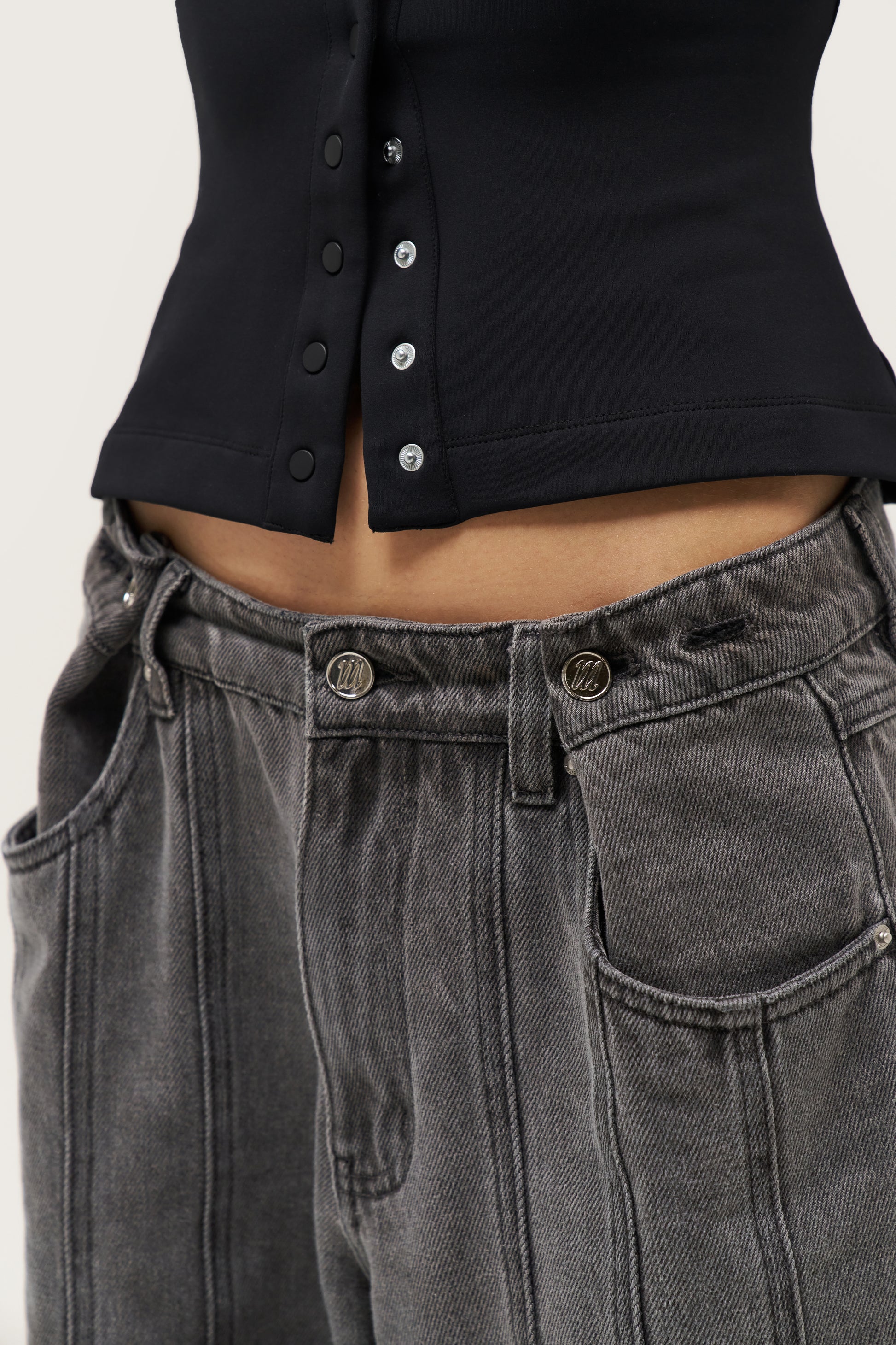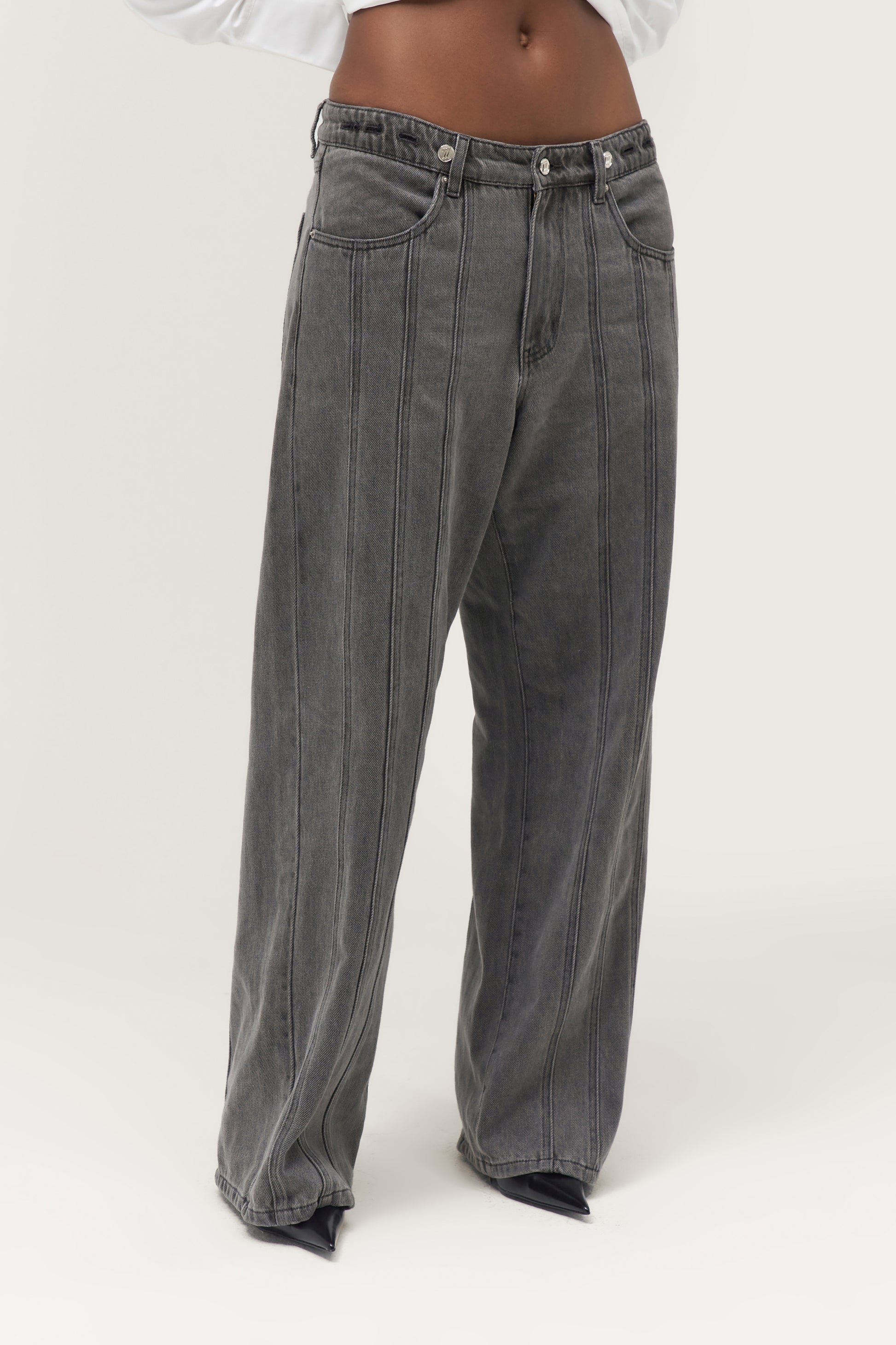 The Seam Detail Boyfriend Denim Jeans have been made so you can wear them every day, using high quality cotton mixed with a polyester for a softer and drapier fit. The waist can be tailored to fit you with our adjustable branded button feature. Fasten on the tightest hole for a high-waisted more tailored fit, and leave them unbuttoned for the ultimate low slung baggy fit. If you want the buttoned up pleat, but to sit lower as on Molly and Gabriella, we recommend sizing up and buttoning on the tightest hole.