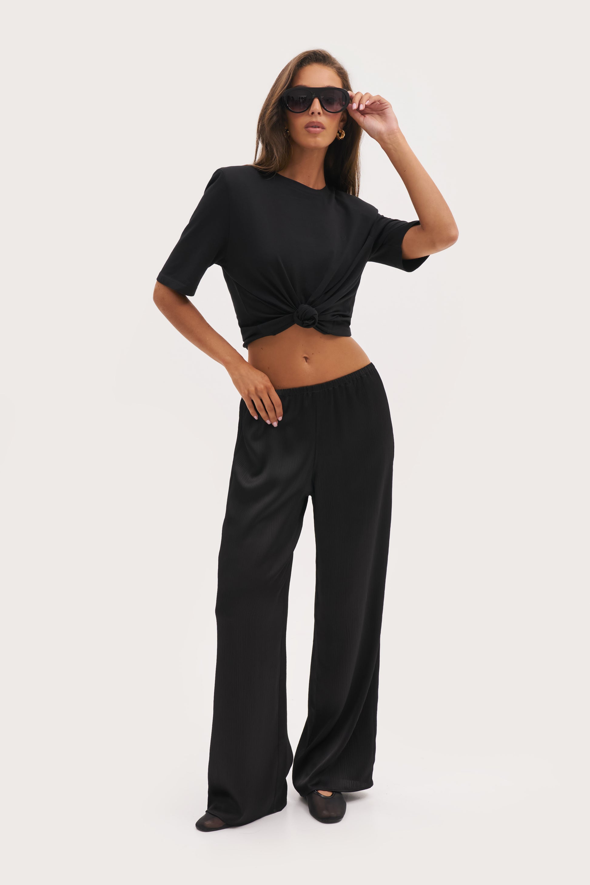 The Vacation Mini Pleat Pants in sateen fabric feature a relaxed wide-leg silhouette for effortless comfort and style. The pull-on design with an elasticated mini waistband ensures a perfect fit, while the delicate mini pleats add subtle texture. Finished with a tonal embroidered Maebe label at the back, these pants combine refined details with easy wearability, ideal for both casual and polished looks.