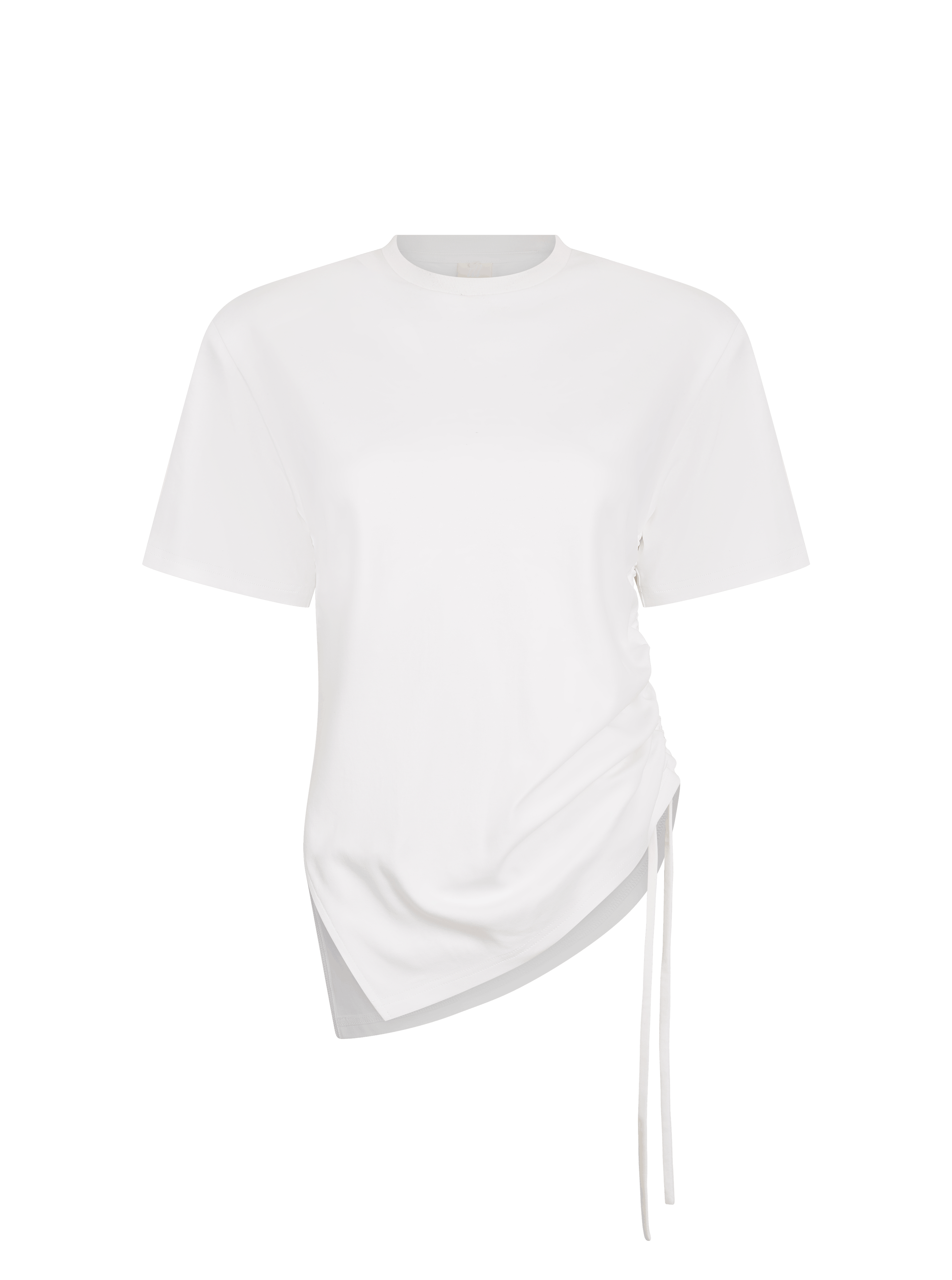 Crafted from heavyweight jersey fabric, the Ashin Oversized Tee in White offers substantial comfort and durability. The oversized silhouette provides a relaxed effortless style, whilst ruched side feature adds detailing. Removable shoulder pads allow you to customise the fit to your preference, and subtle embroidered branding at the back neck completes the refined style. A versatile wardrobe essential that transitions seamlessly from casual to elevated occasions.