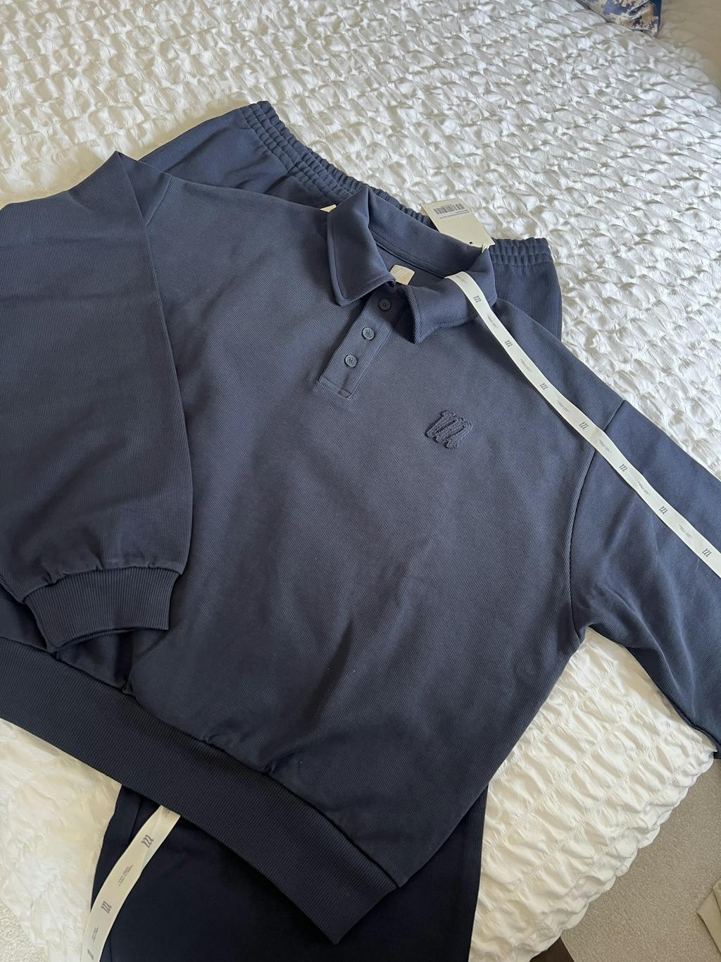 Crafted in soft cotton interlock jersey with a wash-effect, the Daily Errands Wide Leg Joggers in Washed Navy provide ultimate comfort and style. The relaxed wide-leg silhouette pairs perfectly with an internal drawcord waistband featuring Maebe branded aglets, so can be worn high, mid or low-waisted. As part of our Daily Errands drop, the joggers can be styled with the Mid Length Hoodie or Collared Sweatshirt in varying combinations providing ultimate versatility for any occasion.