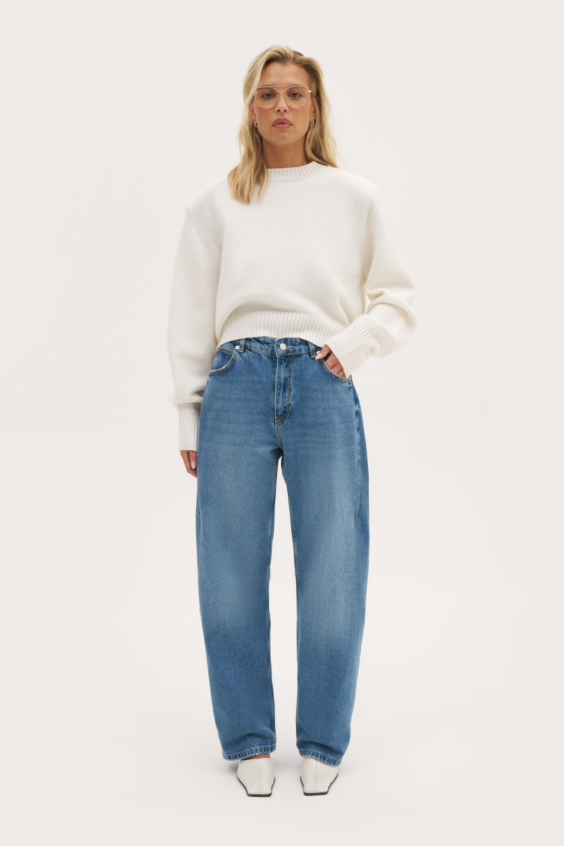 Introducing the latest brand favourite, the Every Wear Jeans are engineered for lasting wear with premium 14oz heavyweight denim. The fabric's subtle fading adds depth and character, whilst a refined barrel-leg cut with precision side seam darts delivers modern proportion. A concealed adjustable waistband provides discreet customisation for optimal comfort. Five-pocket construction, reinforced yoke detailing, and belt loops offer practical functionality, whilst genuine leather Maebe branding and silver hardware elevate the finish with understated sophistication. Aptly named for the ability to wear, everywhere.