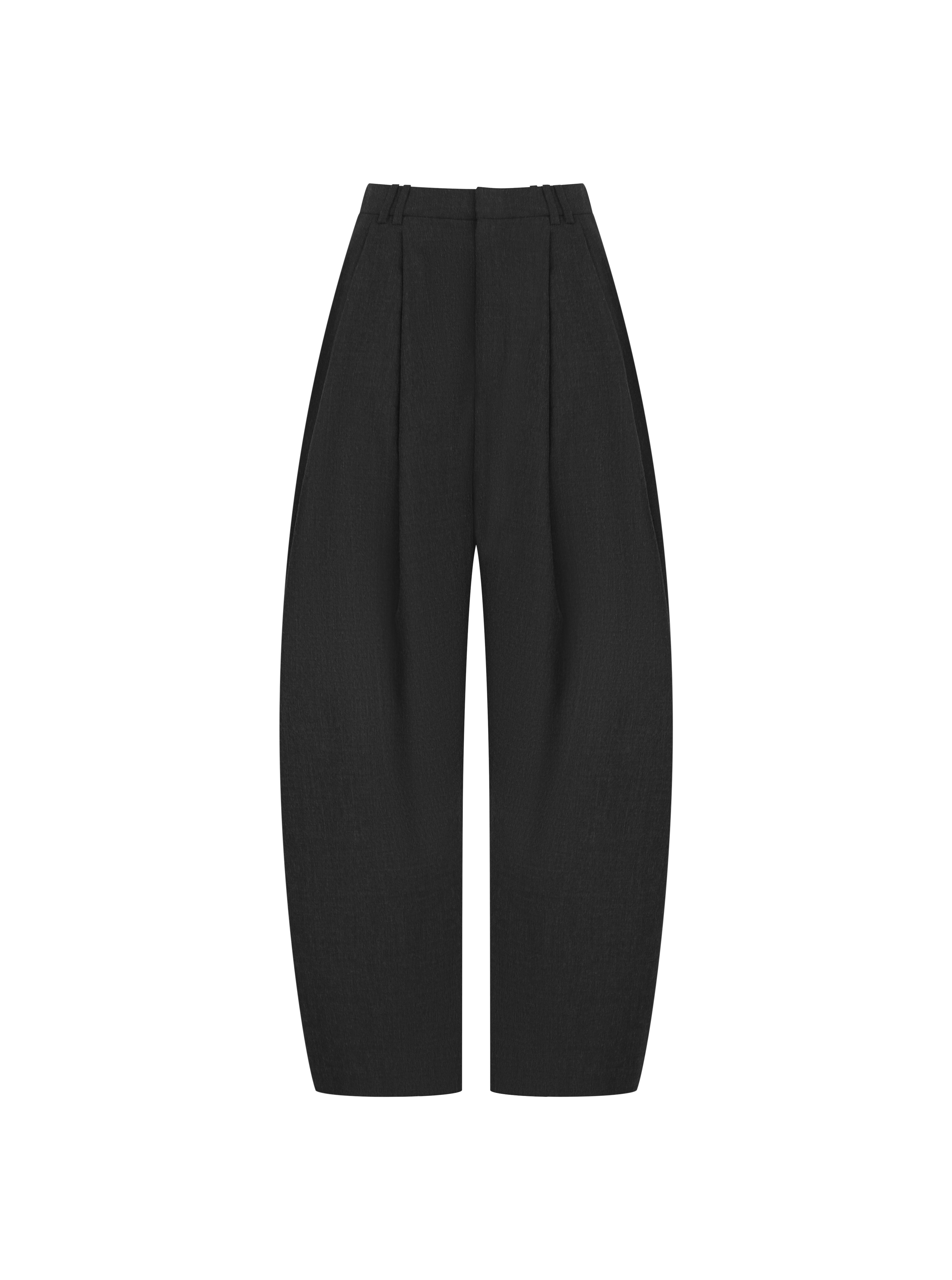 Crafted from a blended-yarn, textured tailoring fabric, the Pleated Wide Leg Trousers offer a refined silhouette with barrel-style volume and double pleats for effortless elegance. Offered as part of our premium range, the discreet internal adjustable waistband ensures a perfect fit, complemented by thoughtful double and cross belt loops. Finished with internal hook and bar fastening, slanted side pockets, and marbled matte tonal buttons on the jet pockets, these trousers combine practicality with sophistication. A tonal Maebe woven label at the back adds a subtle signature detail.