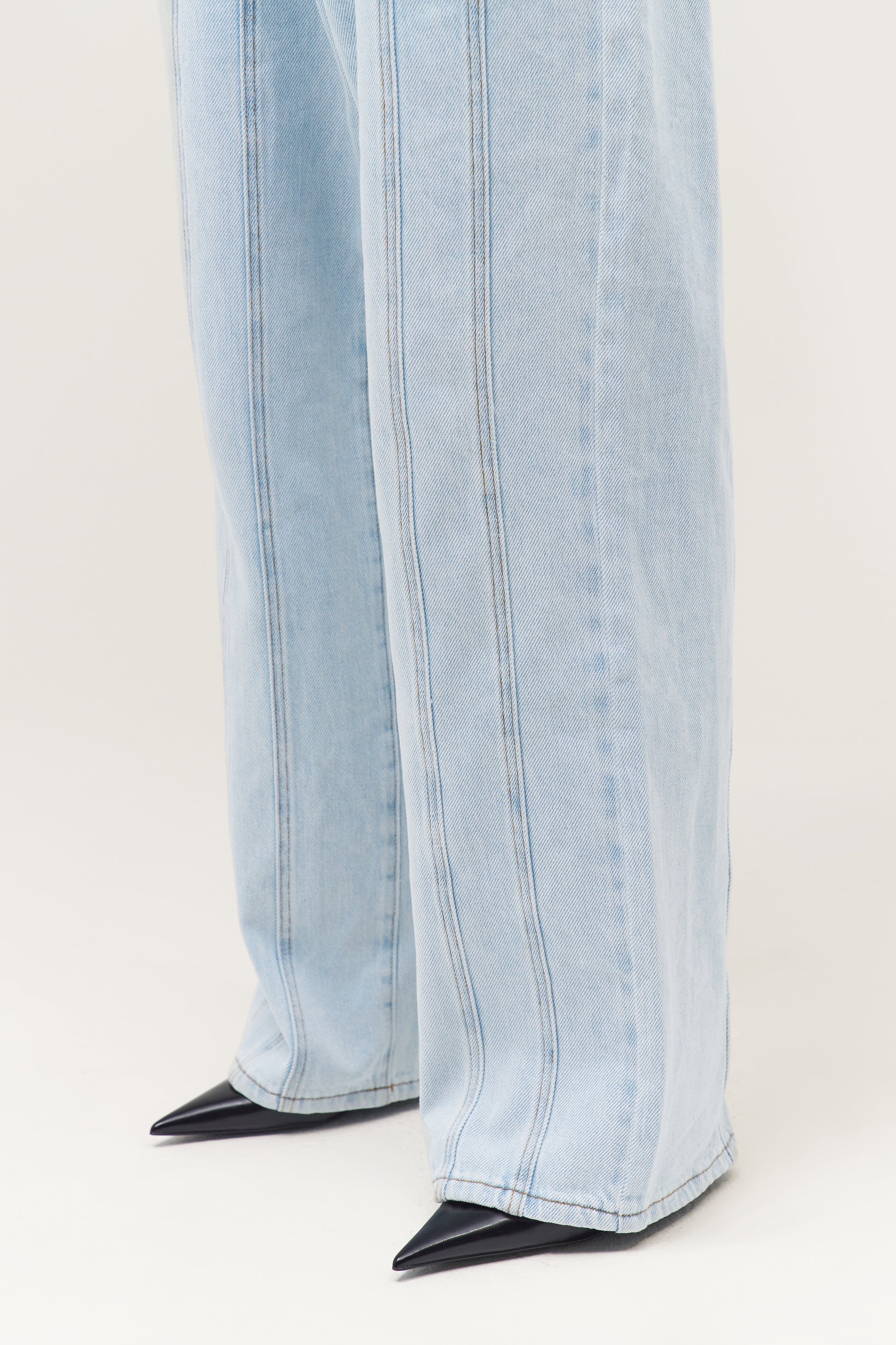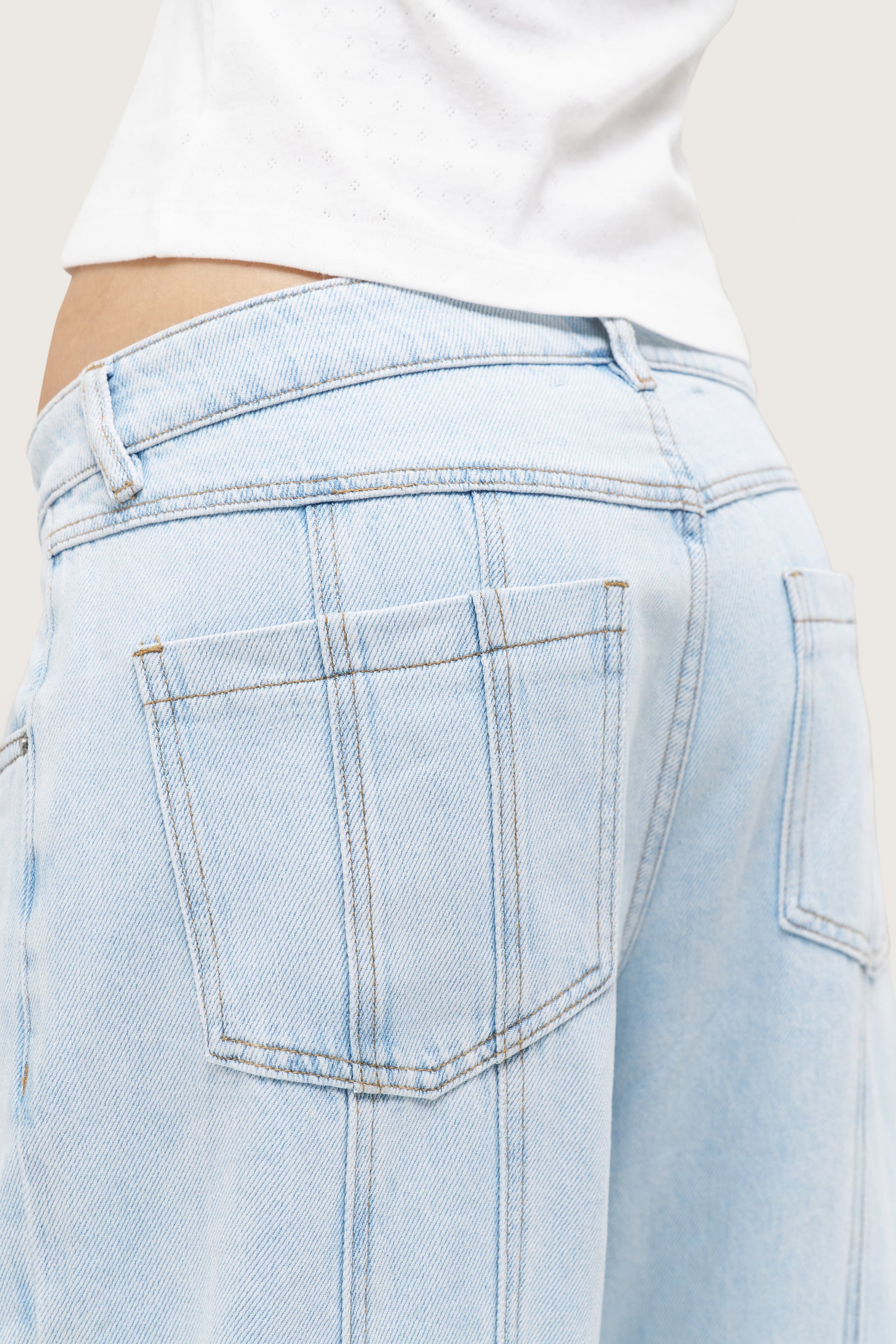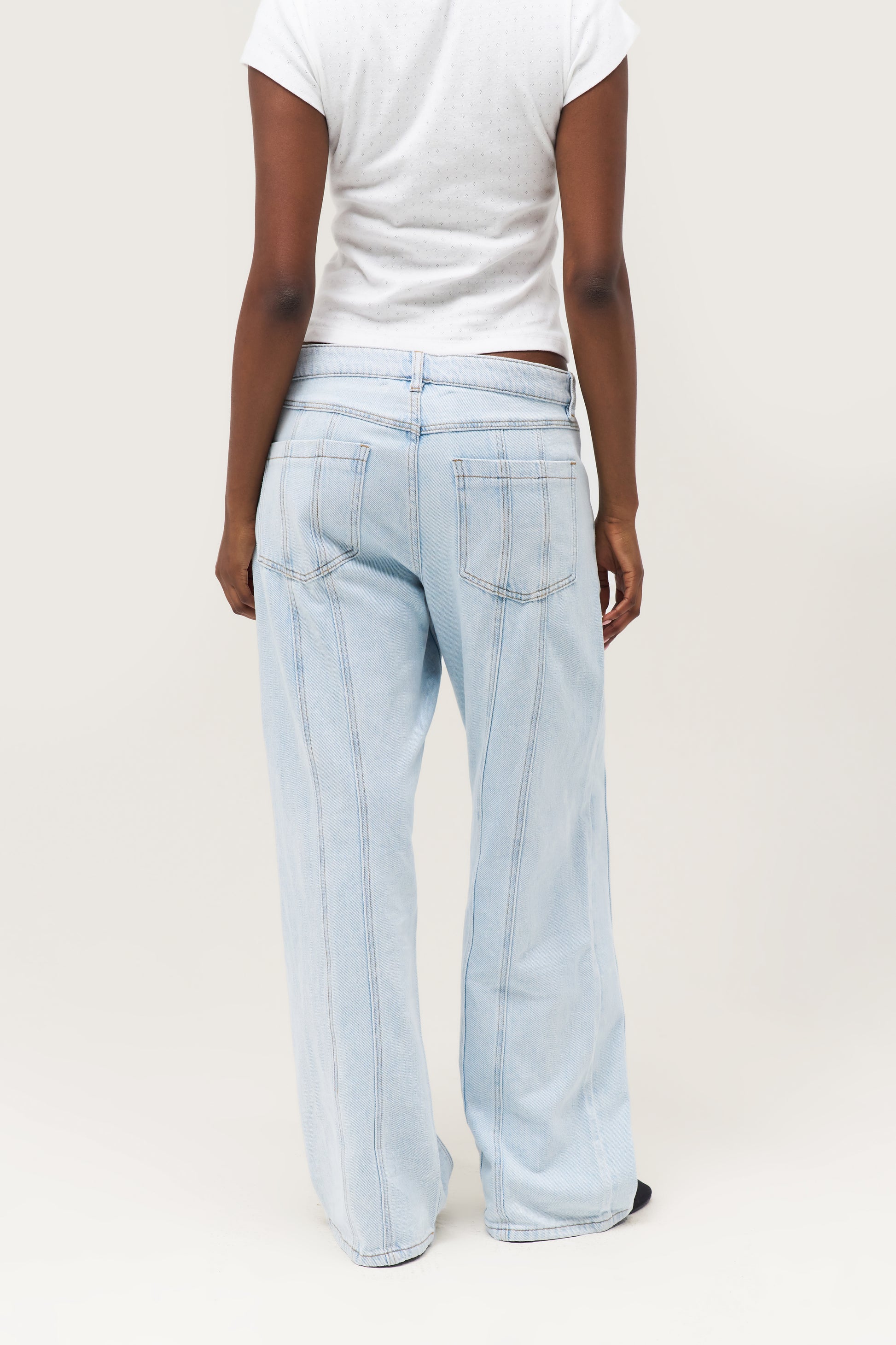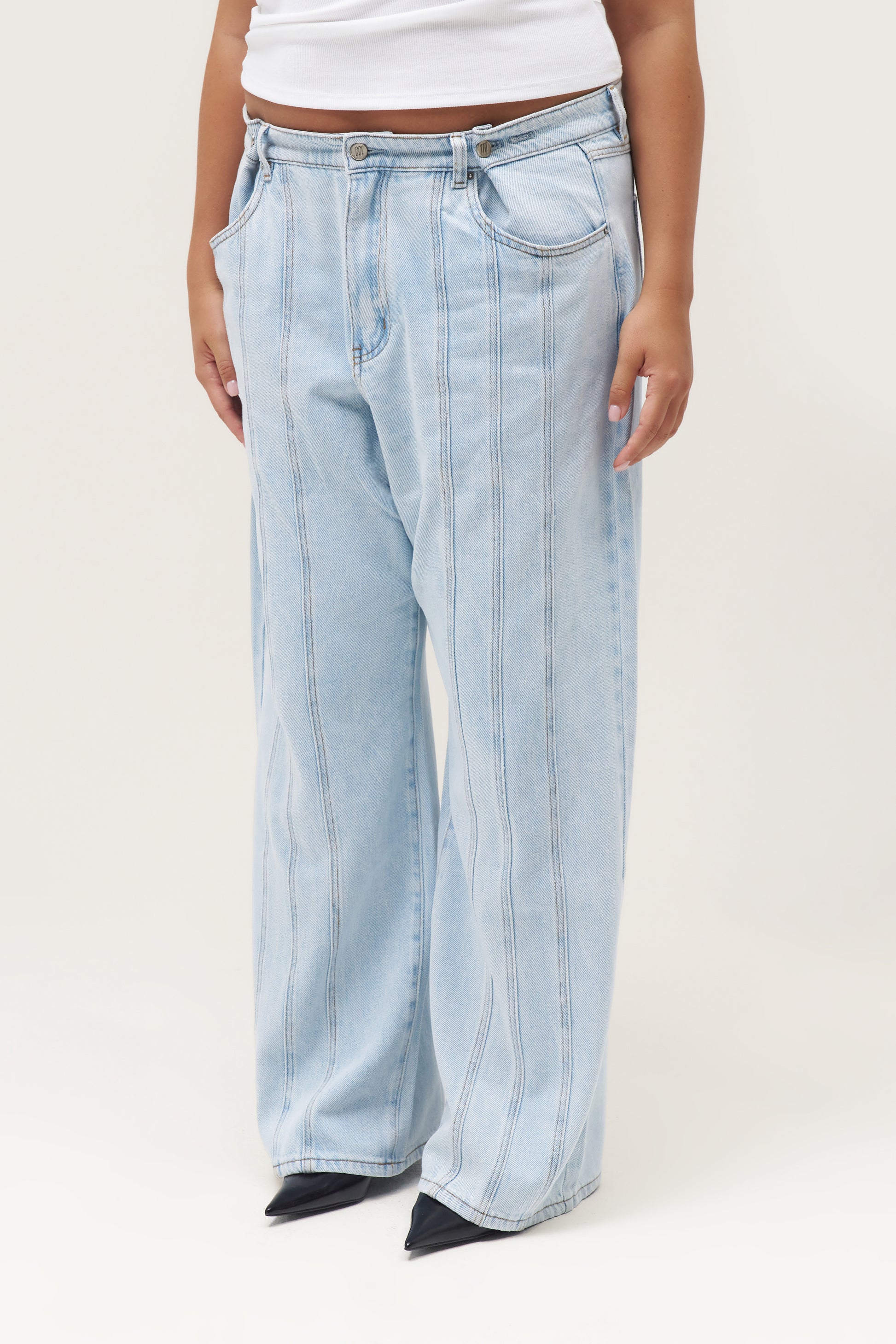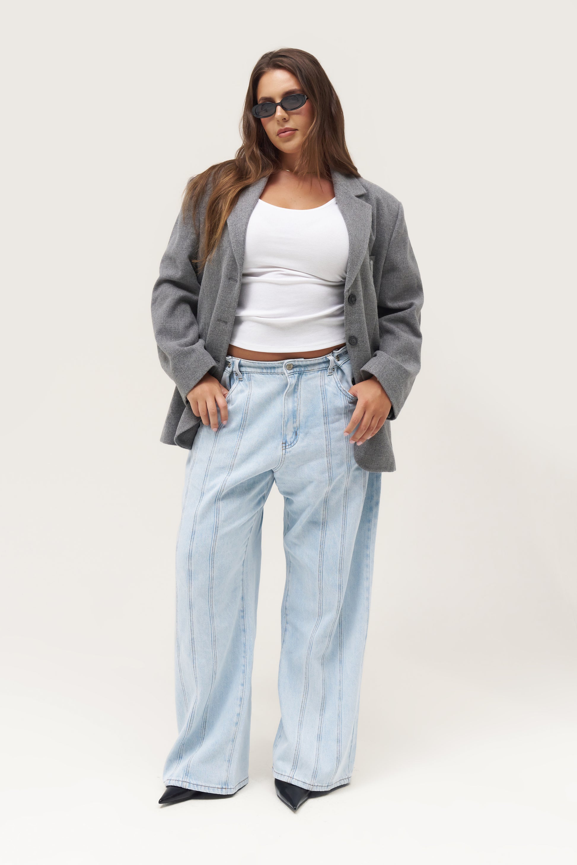 The Seam Detail Boyfriend Denim Jeans have been made so you can wear them every day, using high quality cotton mixed with a polyester for a softer and drapier fit. The waist can be tailored to fit you with our adjustable branded button feature. Fasten on the tightest hole for a high-waisted more tailored fit, and leave them unbuttoned for the ultimate low slung baggy fit. If you want the buttoned up pleat, but to sit lower as on Molly and Gabriella, we recommend sizing up and buttoning on the tightest hole.